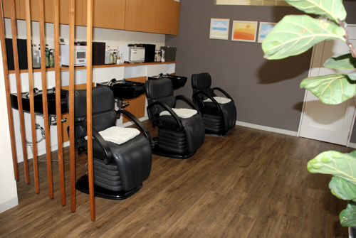 マリンは、店内に入ると万華鏡のようにきれいな世界が広がっている美容室にしたいという願いから、万華鏡中の景色はラッセンが描く海のように感じられたので海の中に例えてマリンとしました。