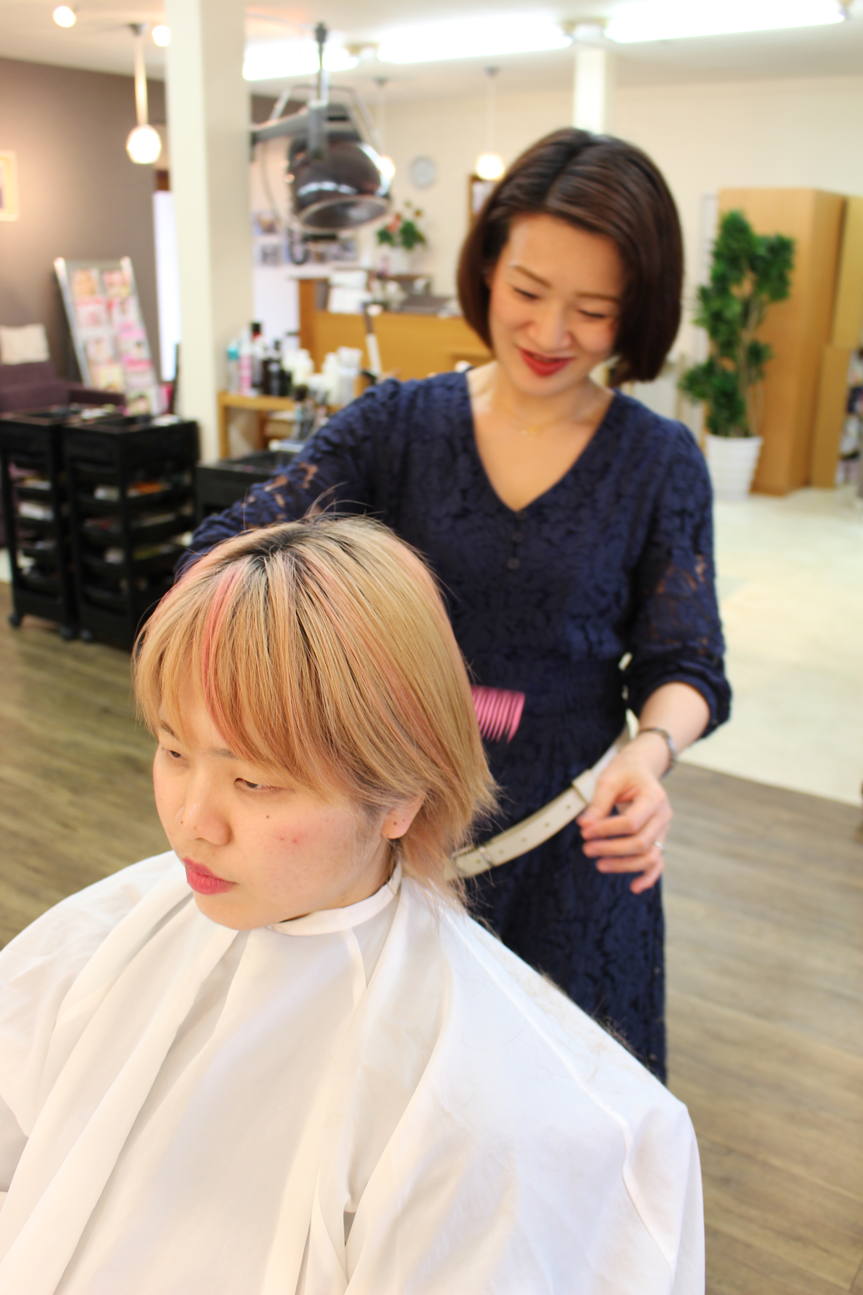 大人になり、まさか美容室に嫁ぐとは思ってはいませんでしたが、美容師に興味はあったので、通信で学校に通いながら、美容師免許をとり、今はナリスビューティエステティックの勉強にも行っています。